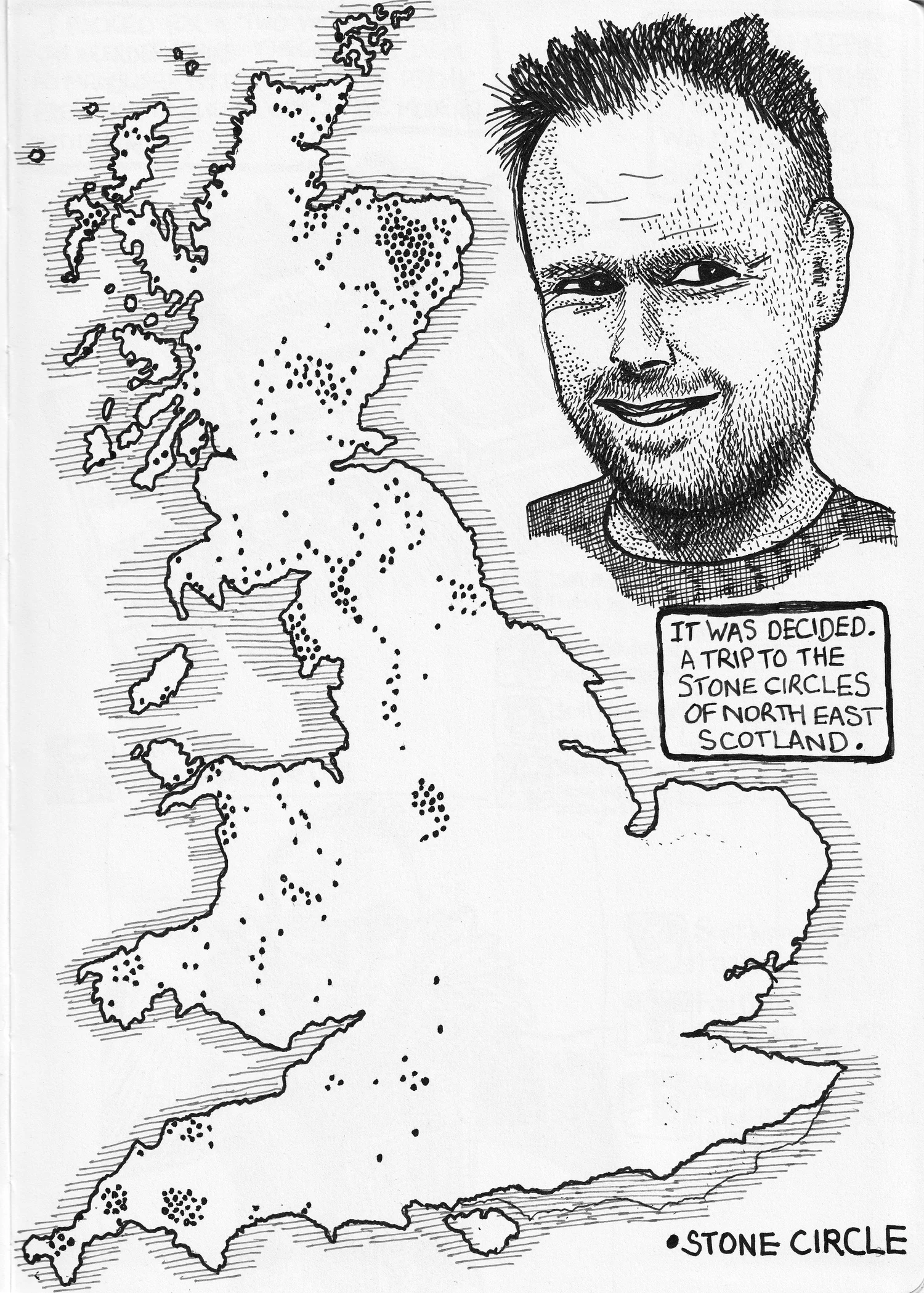 It was decided. A trip to the stone circles of North East Scotland. I packed for a two-week retreat in Aberdeenshire. I wanted to investigate a style of monument peculiar to the lower lying territories of the Grampian Mountain range. I was sure the